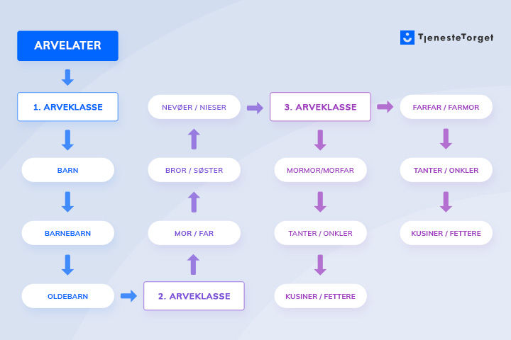 Arverekkefølgen følger arveklassene som er definert i arveloven. Dersom avdøde ikke har opprettet et testament, blir arven fordelt etter lovens arverekkefølge. Arvelovens arverekkefølge er delt i tre klasser.